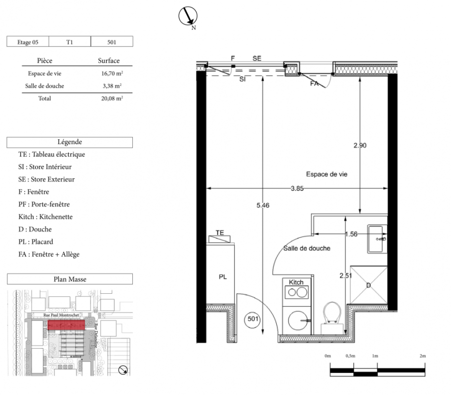 92 800€ Appt. Studio 20.37m2 2ème
