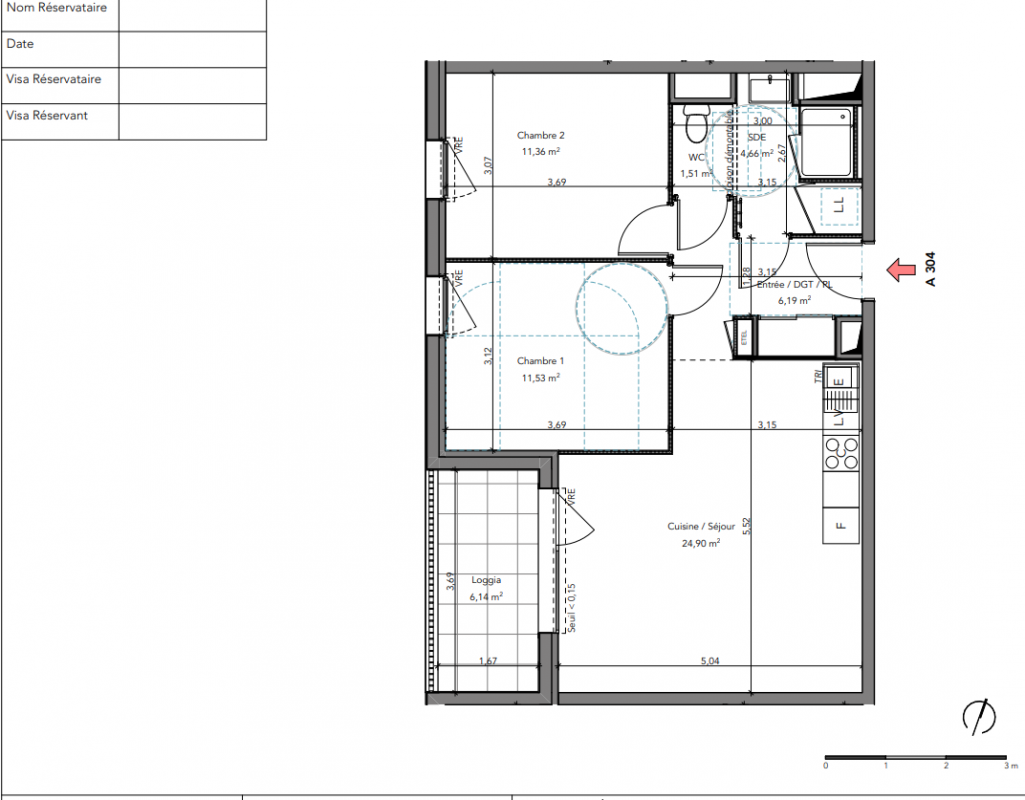 259 900€ Appt. T3 59.03m2 3ème