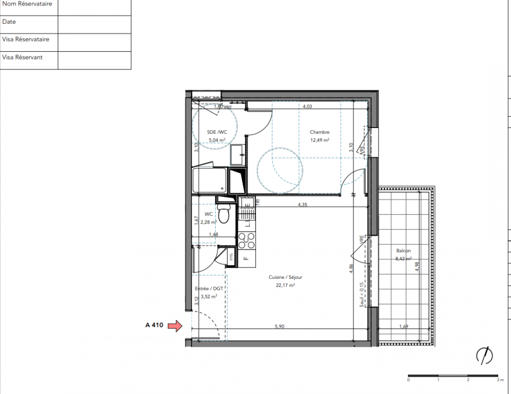 212 900€ Appt. T2 45.5m2 3ème