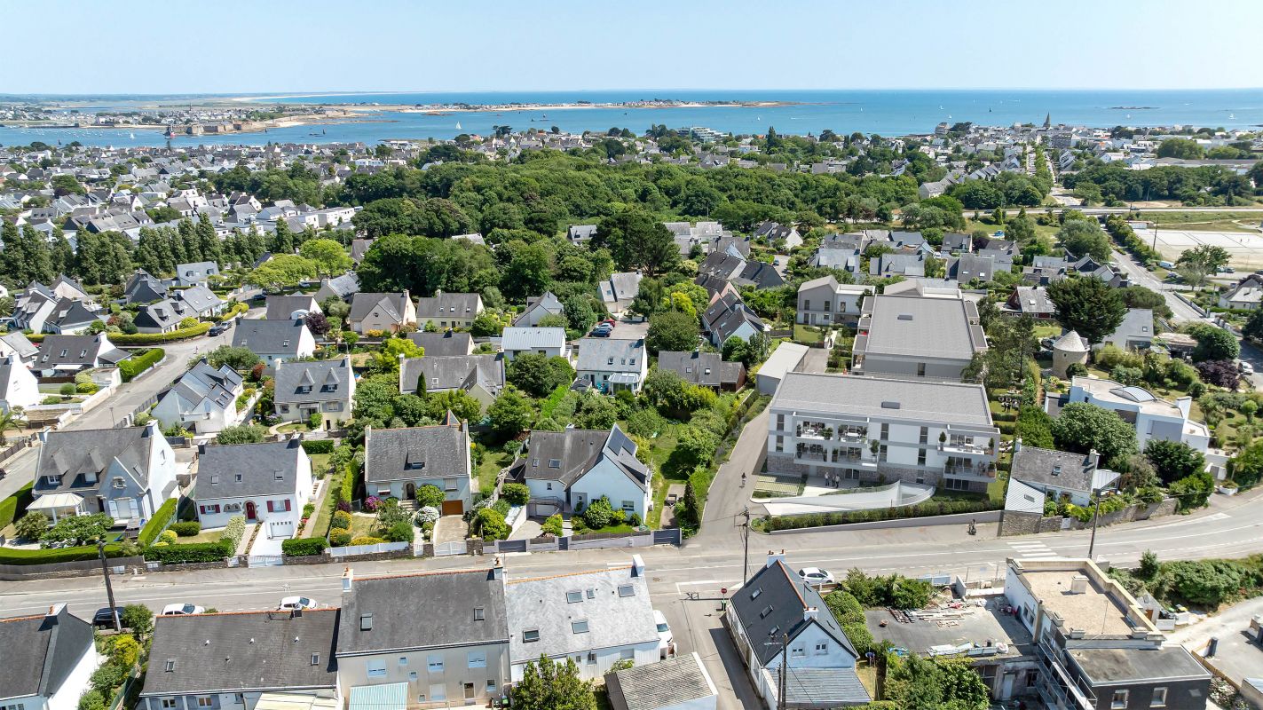 Découvrez une adresse rare à Larmor-Plage, entre sérénité, nature et océan. Notre nouvelle résidence propose des appartements du 2 au 4 pièces ainsi que des maisons de 4 à 5 pièces, aux volumes généreux et bien agencés. Chaque logement dispose d’un extérieur privatif : balcon, terrasse ou jardin. Stationnement inclus pour tous les résidents, ainsi qu’un local vélo pour plus de praticité. Située dans un quartier résidentiel calme, la résidence est à 1,1 km des commerces et 1,3 km des plages. L’emplacement offre un parfait équilibre entre le dynamisme urbain et la sérénité des espaces naturels, avec un arrêt de bus au pied de la résidence. Le port de plaisance et des commerces de proximité ajoutent à la commodité de ce cadre de vie. Larmor-Plage, station balnéaire prisée de Lorient, séduit par son cadre exceptionnel entre mer et nature, avec ses plages, ses équipements nautiques et ses vues imprenables sur l'île de Groix. À seulement 5 minutes de Lorient, cette ville allie accessibilité, dynamisme et qualité de vie tout au long de l’année. Contactez-nous dès maintenant pour découvrir en avant-première tous nos maisons et appartements neufs à Larmor-Plage et bénéficier des meilleures conditions pour votre achat !