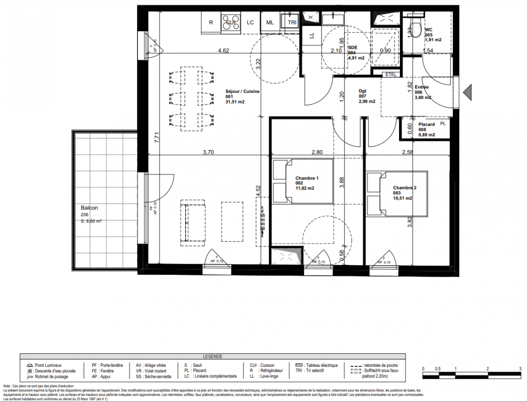 306 000€ Appt. T3 70.2m2 3ème