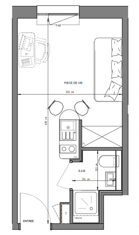 89 173€ Appt. Studio 17.34m2 0-RDC