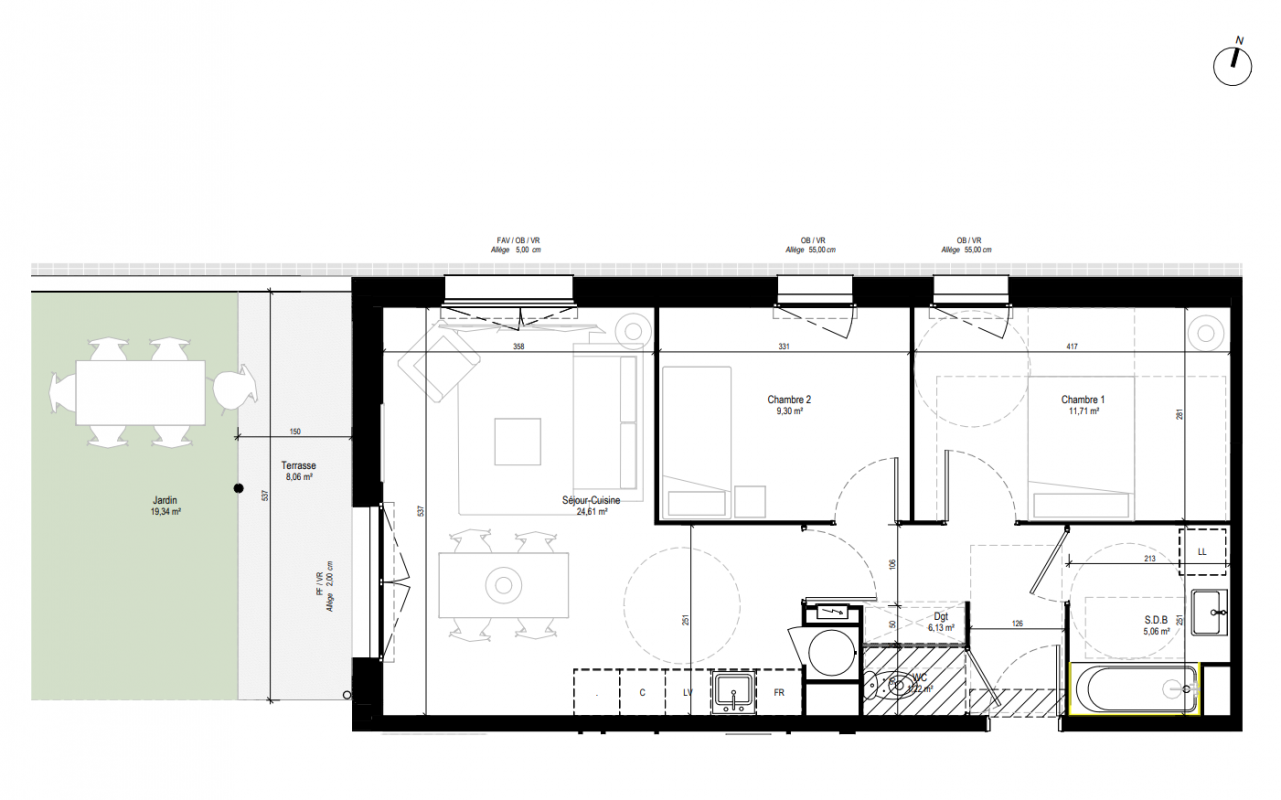| Voir | Disponible | 212 588€ | F3 02 | Appt. | T3 | 57.78m2 | 0-RDC | Disponible | 212 588€ | Voir |
