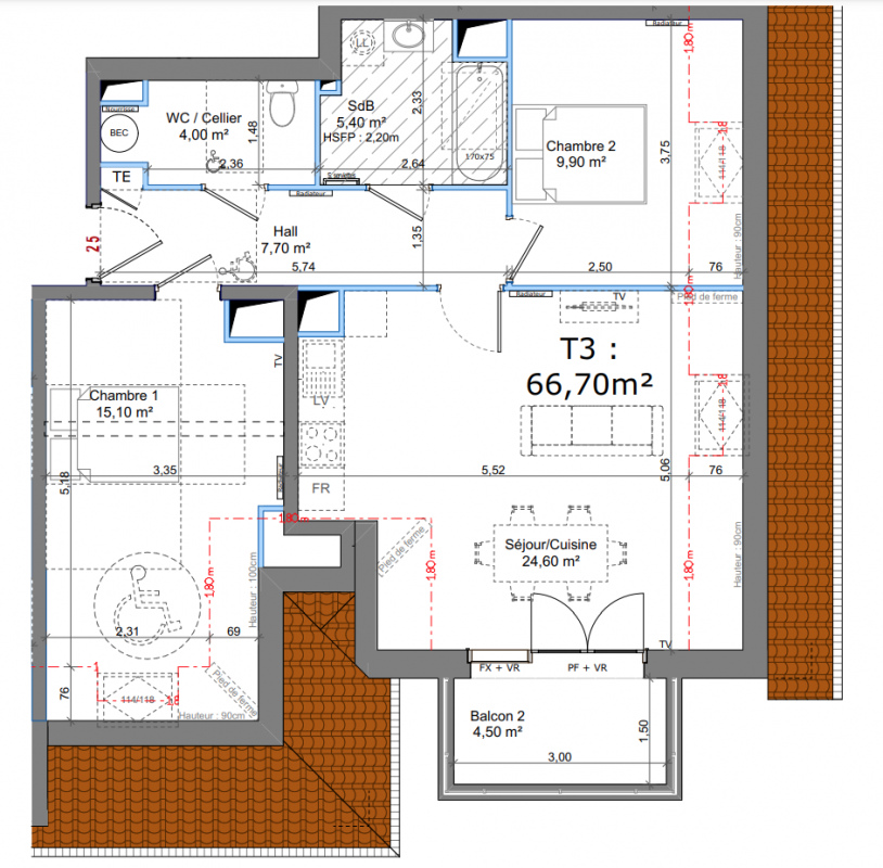409 000€ Appt. T3 78.3m2 0-RDC
