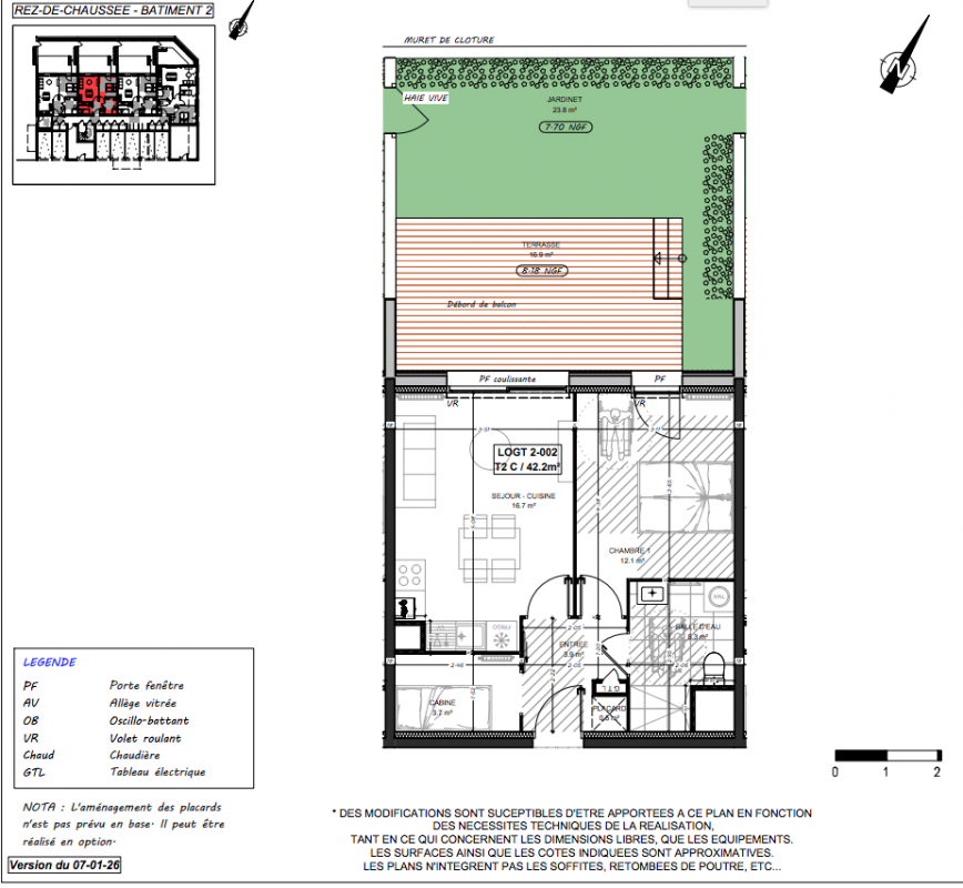 | Voir | Disponible | 214 000€ | 1-002 | Appt. | T2 | 42.2m2 | 0-RDC | Disponible | 214 000€ | Voir |
