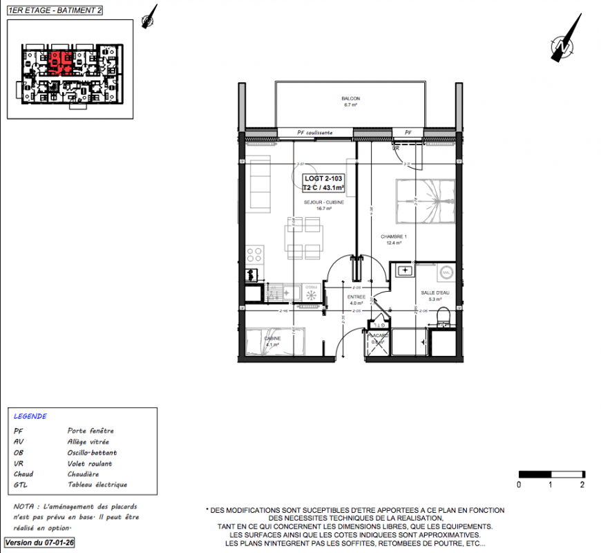 | Voir | Disponible | 218 000€ | 2-102 | Appt. | T2 | 43.7m2 | 1er | Disponible | 218 000€ | Voir |