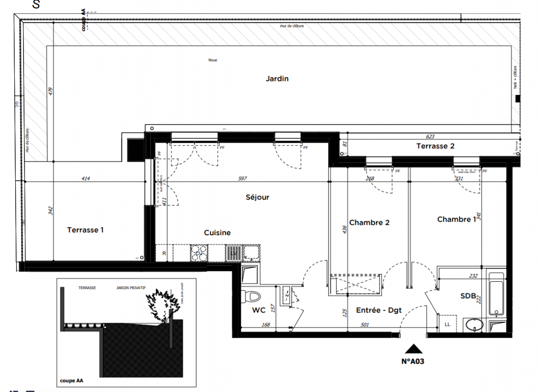 442 500€ Appt. T3 74.22m2 0-RDC