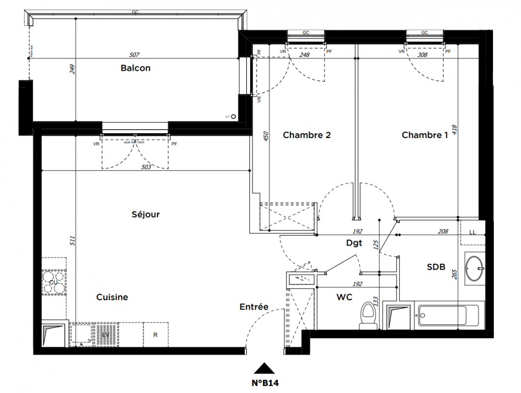 397 600€ Appt. T3 64.02m2 0-RDC