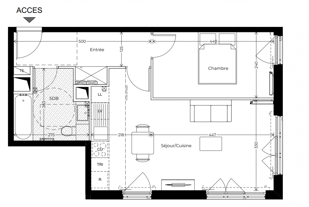 | Voir | Disponible | 333 000€ | A01 | Appt. | - | 43.8m2 | 0-RDC | Disponible | 333 000€ | Voir |