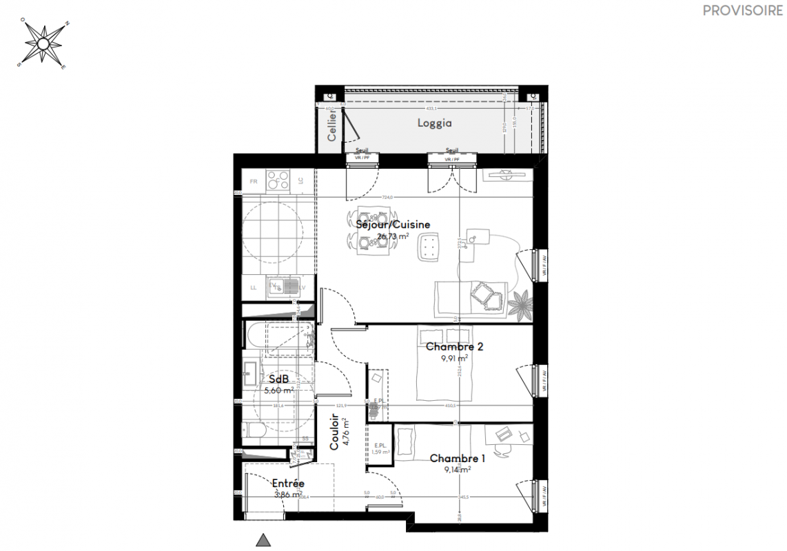 309 900€ Appt. - 60.09m2 3ème