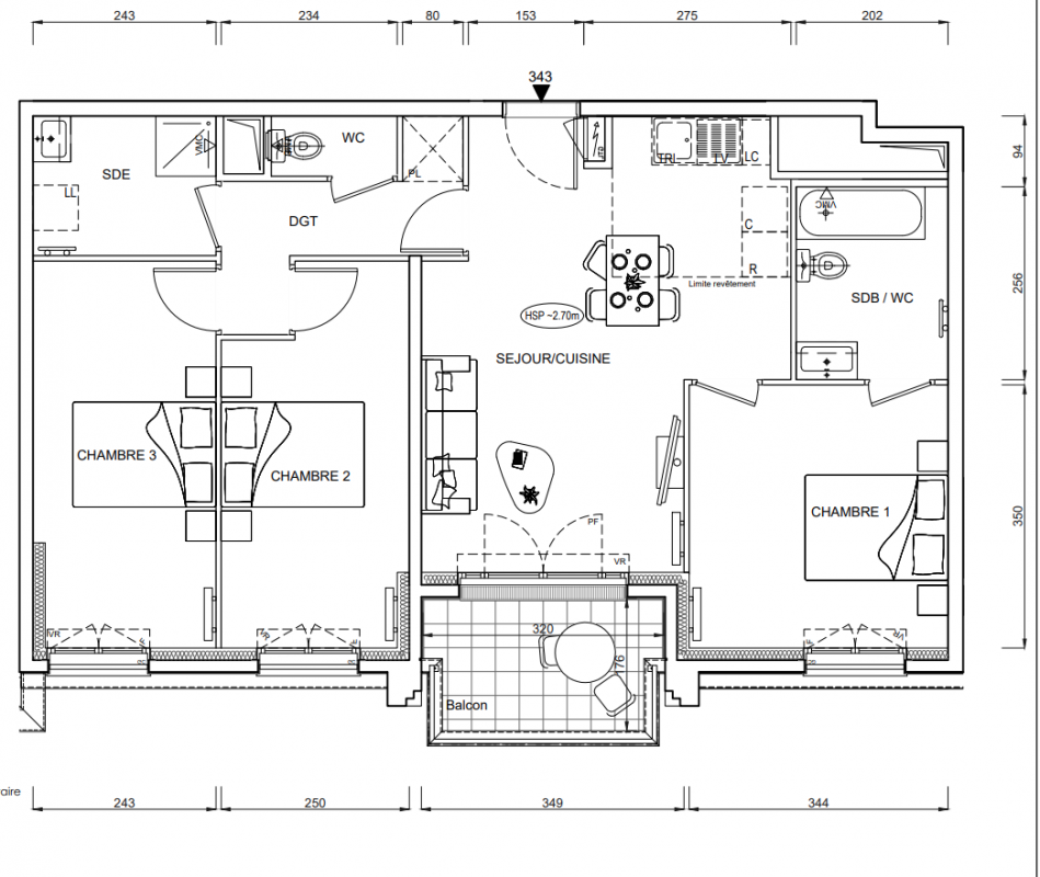 353 744€ Appt. T4 76.42m2 5ème