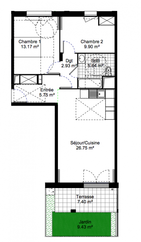 266 400€ Appt. T3 61.3m2 1er