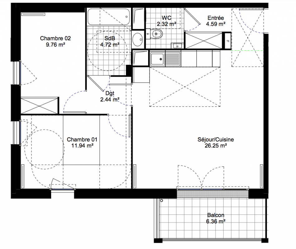 262 800€ Appt. T3 59.69m2 3ème