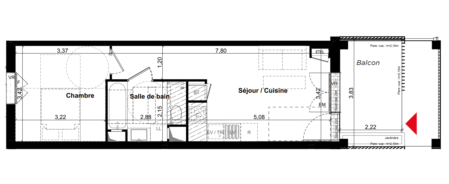 | Voir | Disponible | 173 900€ | B03 | Appt. | - | 37.66m2 | 0-RDC | Disponible | 173 900€ | Voir |