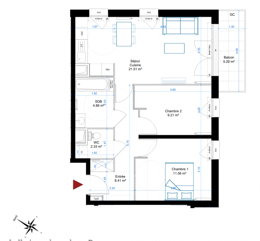 223 999€ Appt. T3 58m2 2ème