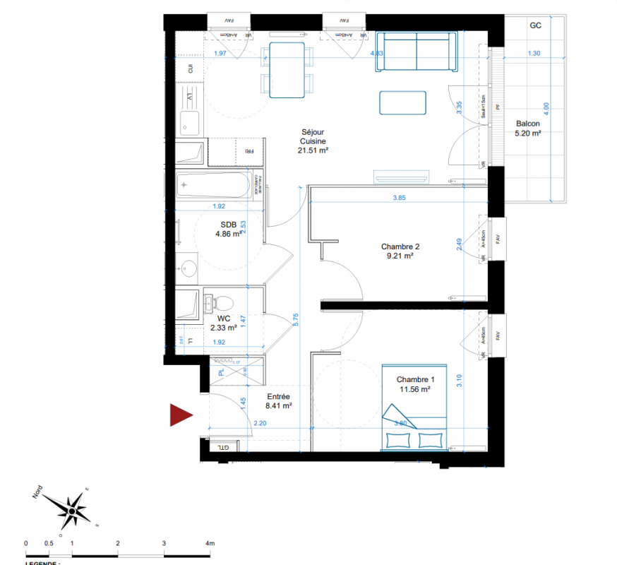 223 999€ Appt. T3 58m2 2ème