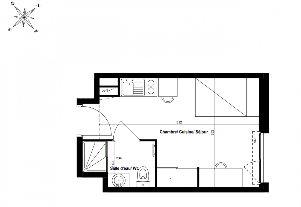 166 344€ Appt. Studio 23.4m2 2ème