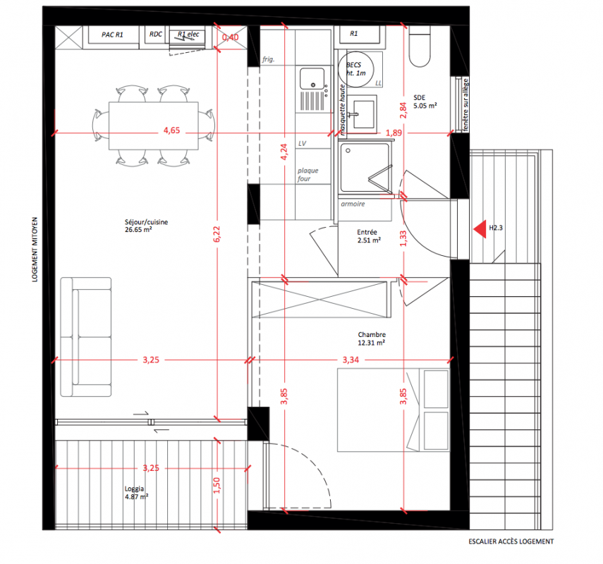 236 100€ Appt. T2 46.45m2 1er